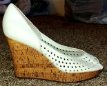 Steve Madden Women's Shoes Sz 7B Pinhole Peep Toe Wedge Shoes White leather