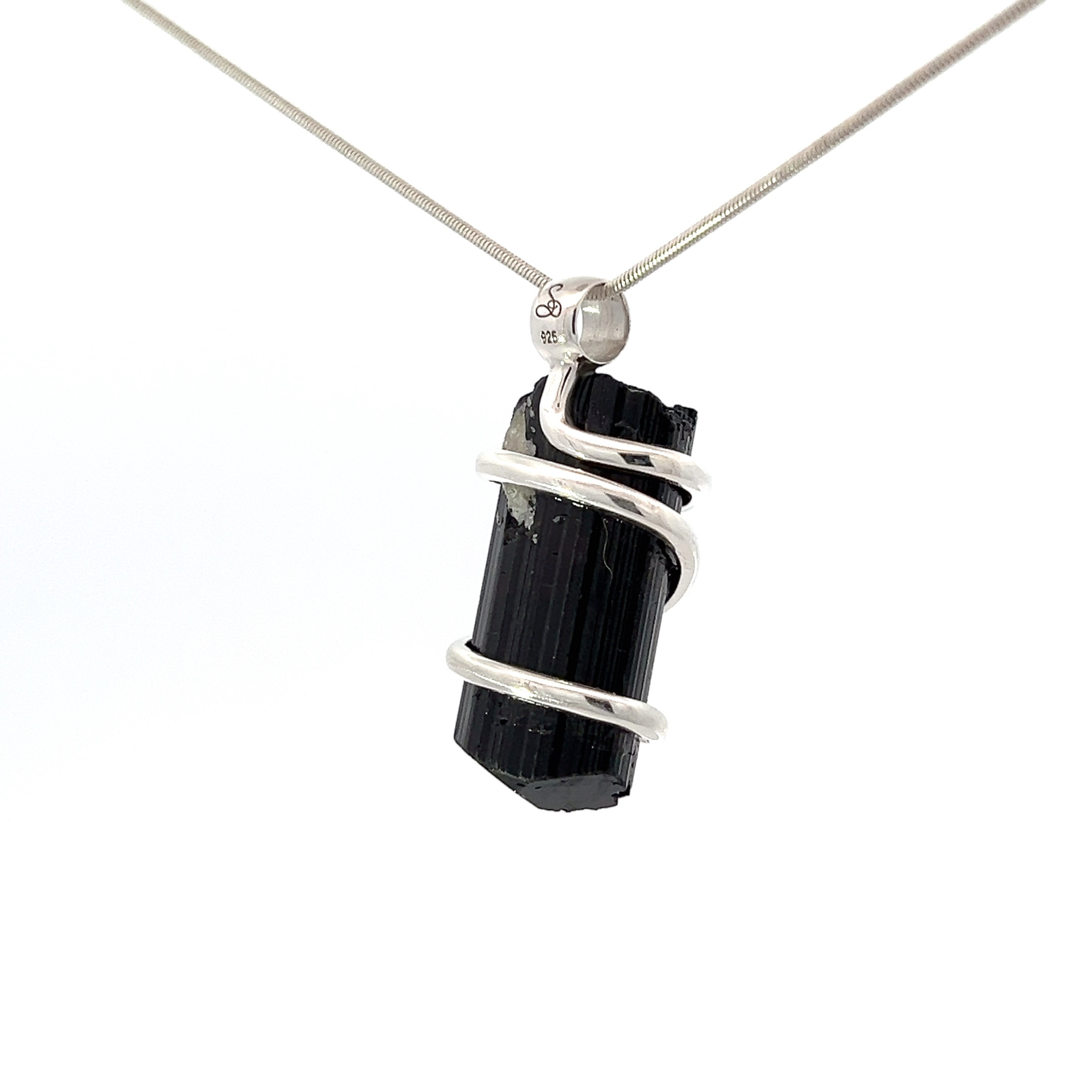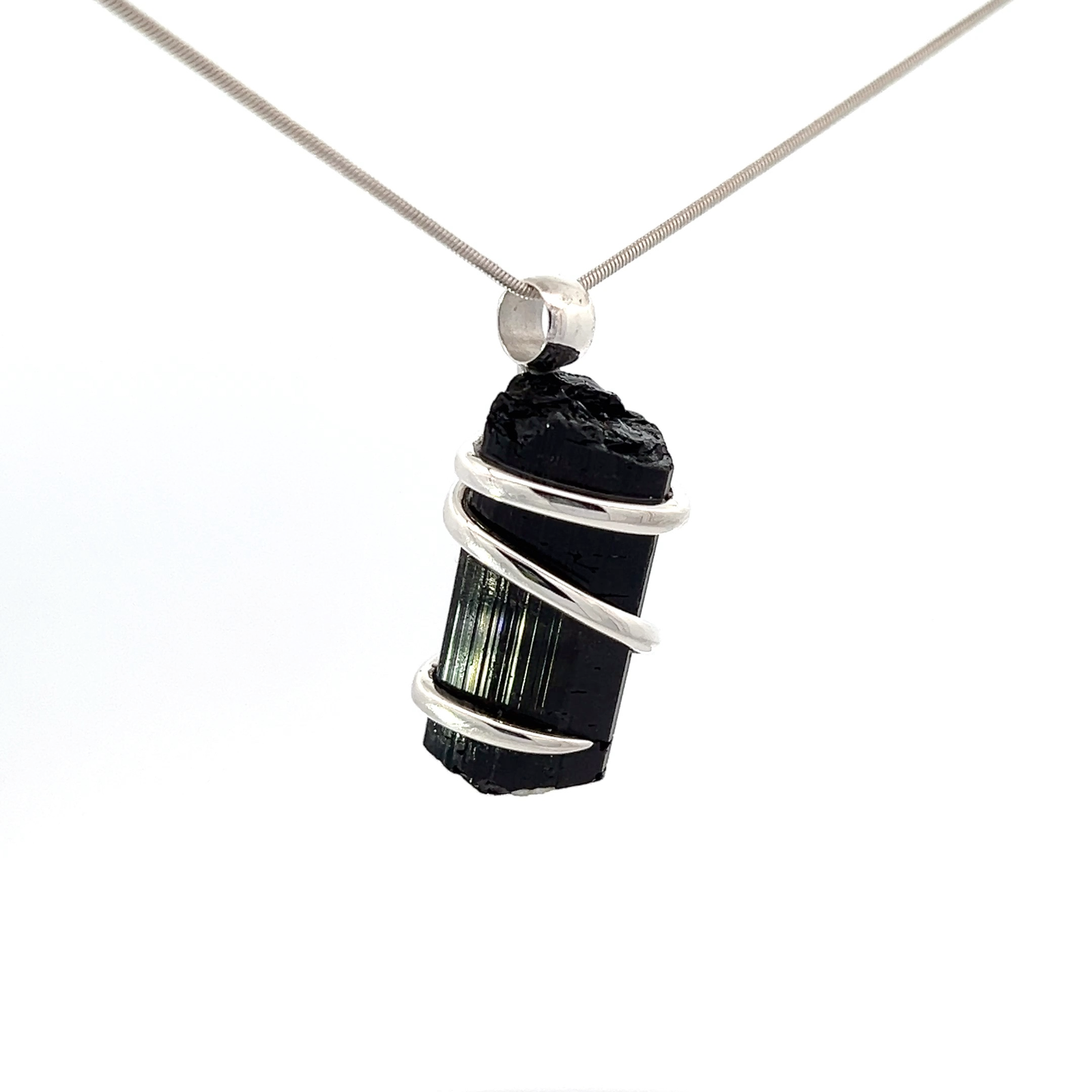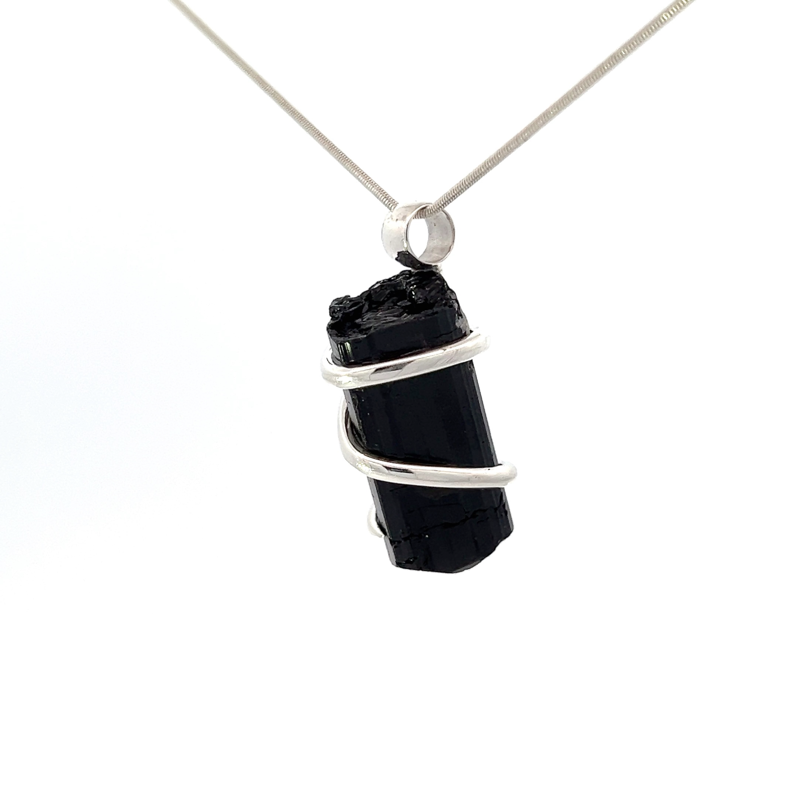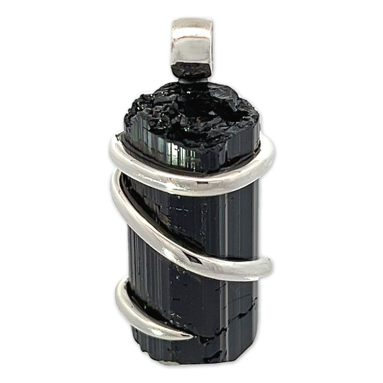 This powerful Black Tourmaline Crystal (49.3 cts) pendant necklace has been wrapped in 925 sterling silver. Designed in Sedona, Arizona by Starborn. Stone from Sri Lanka.