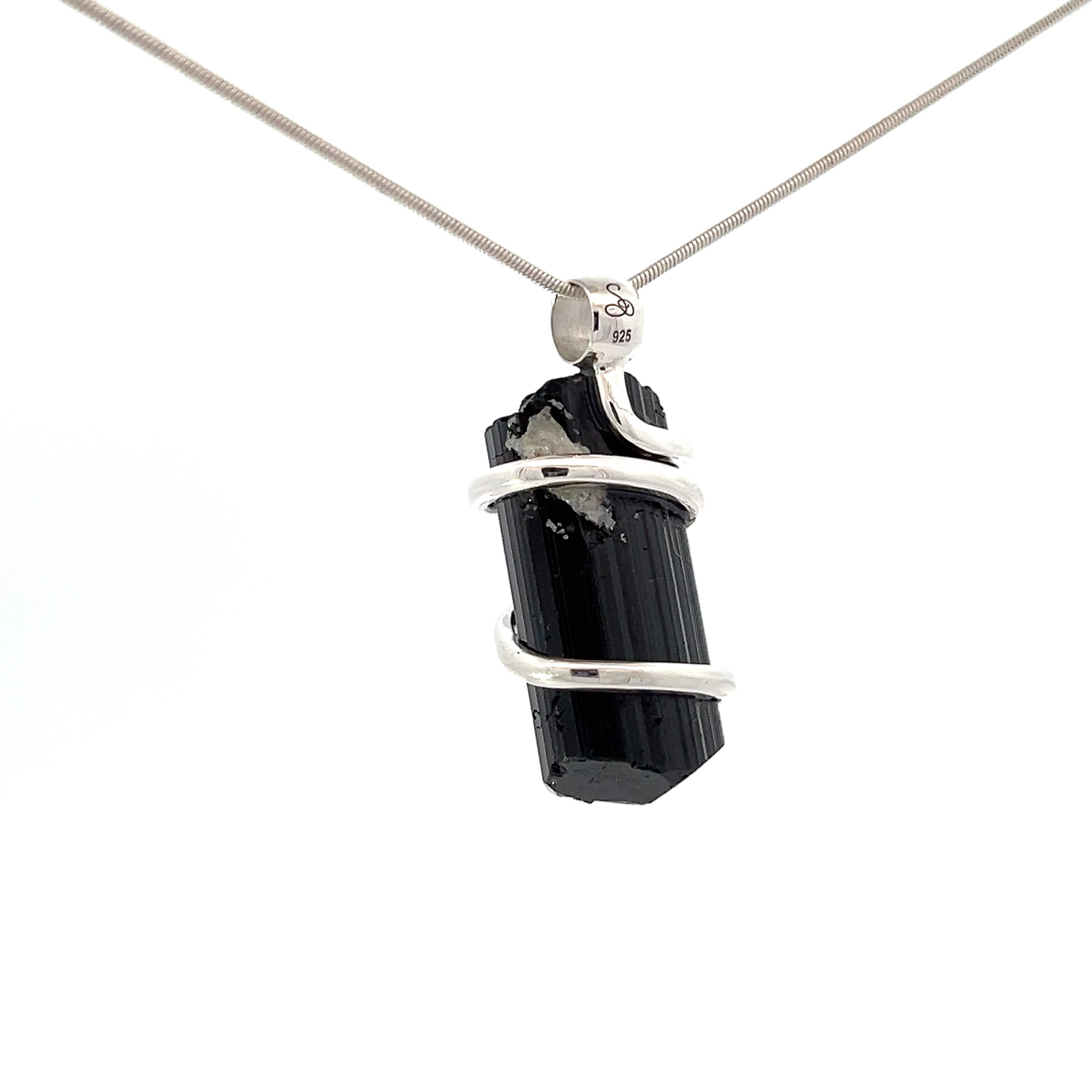 Each shipment includes: the pictured Black Tourmaline Crystal (49.3 cts) stone pendant, a sterling silver necklace, a wooden jewelry box, and a small cleaning cloth. Necklace Style: .9mm Sterling Silver 925 Adjustable Round Chain 22"