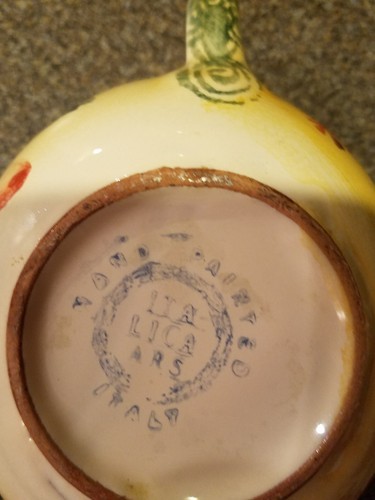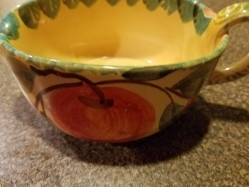 This sale is for one (1) decorative bowl Multiple uses ~ serving bowl ~ gravy boat ~ etc... Handled Hand-painted ~ Fruit pattern Measures approximately 6.5" wide x 3.5" depth x 3" tall Made in Italy Piece is in good ~ pre-owned condition Please view photos for a good description of this item Thank you!