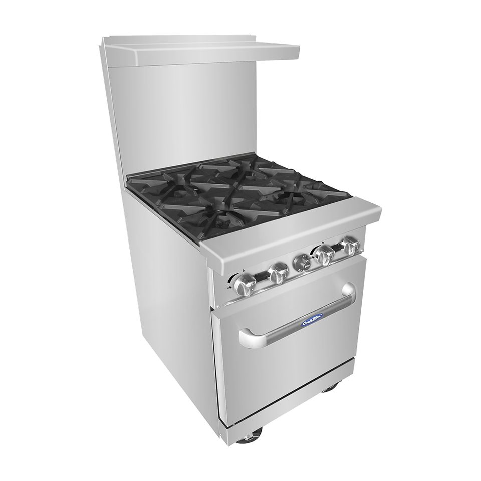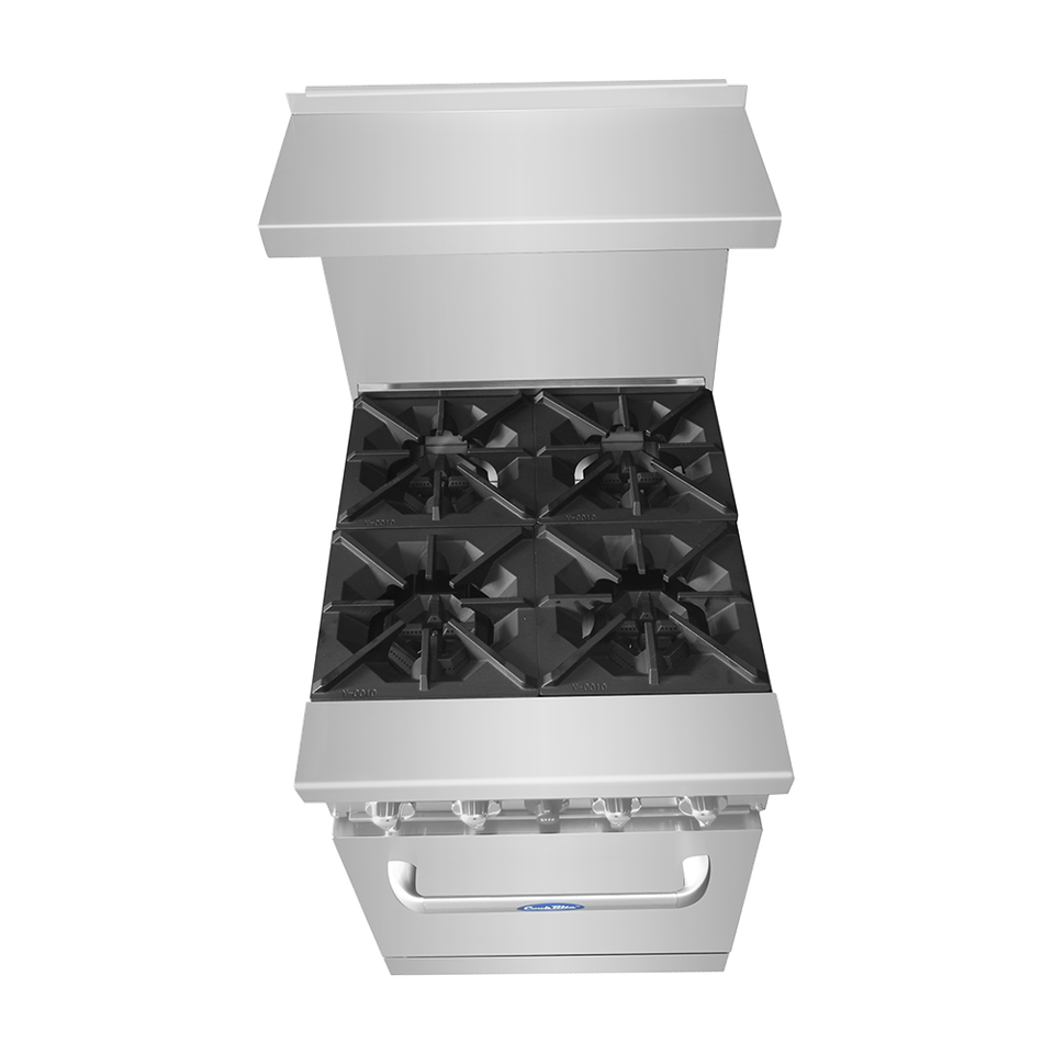 Stove AGR-4B 24" Gas 4 Burner Restaurant Range, Space Saver Oven Casters Nat Gas