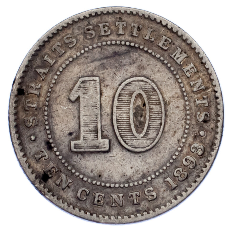 1893 Straits Settlements 10 Cents, Very Fine (VF), KM#11, 0.800 silver (980,000)