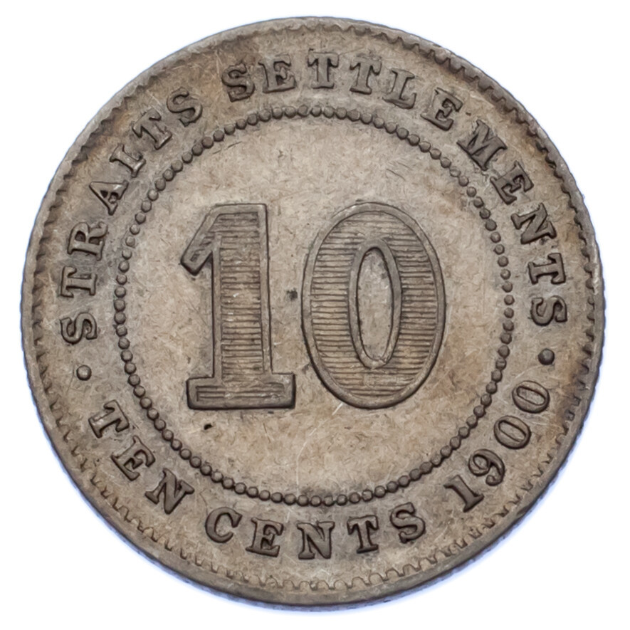1900 Straits Settlements 10 Cents, About Extra Fine (aXF), KM#11, 0.800 silver (2,960,000)