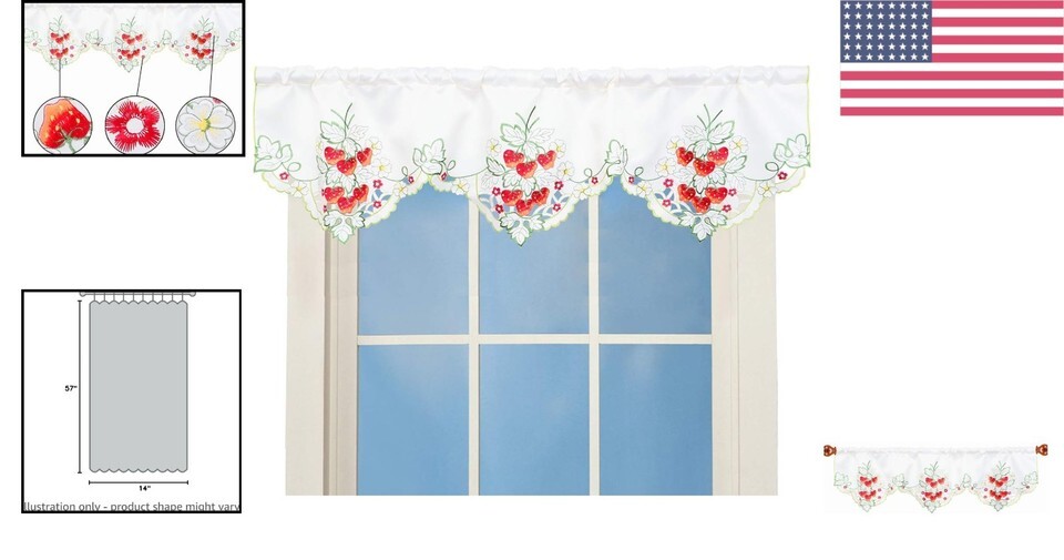 - Strawberry Embroidered 57x14 Blackout Valance - Perfect for Country Kitchens
