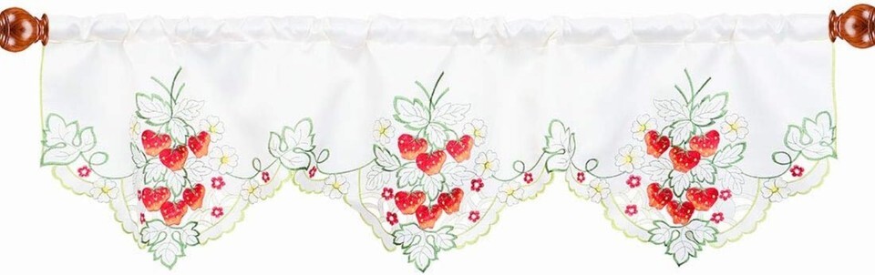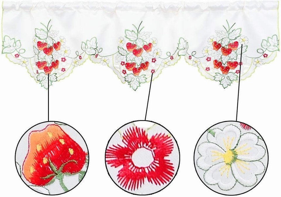 Transform your kitchen into a charming sanctuary with our Strawberry Embroidered Blackout Valance. Its stunning embroidered design combined with the functionality of blocking out light creates an inviting atmosphere perfect for any country kitchen. Made from 100% polyester, this valance promises durability and ease of care, ensuring it retains its beauty through of washings.