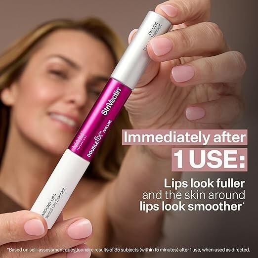 StriVectin Double Fix for Lips Plumping Vertical Line Treatment is a two-in-one anti-wrinkle solution designed to hydrate, smooth, and visibly plump the lips while reducing the appearance of vertical lines around the mouth. This advanced formula delivers both immediate and long-term results, leaving lips softer, fuller, and more youthful-looking. In just one use, lips appear more supple and hydrated, while continued application improves lip texture, reduces dryness, and minimizes wrinkles and fine lines around the lip contour. Clinically tested and proven, it is the perfect treatment to restore lip volume and smoothness without irritation.