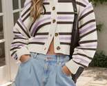 - Striped Button-Up Cropped Cardigan with Relaxed Fit