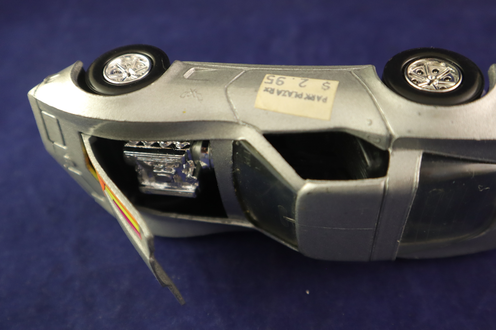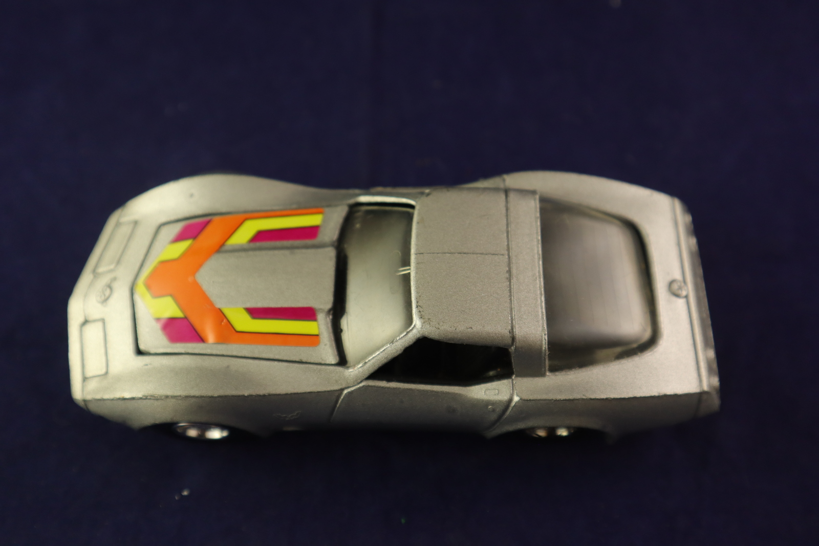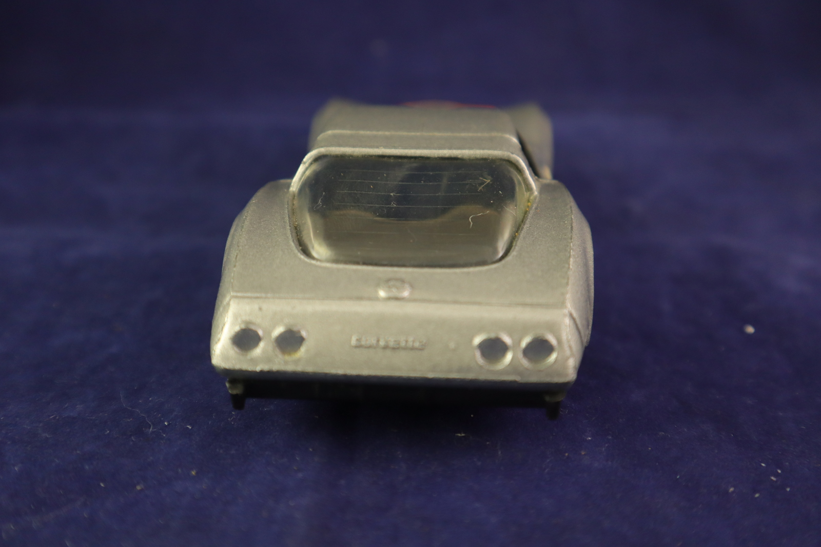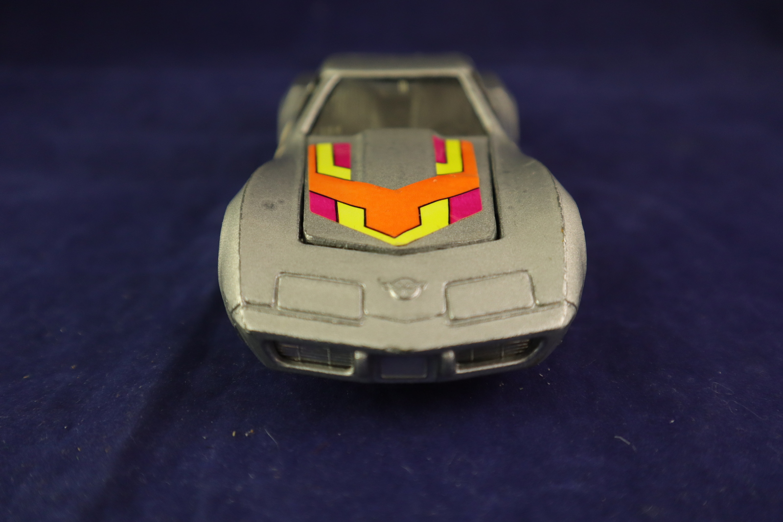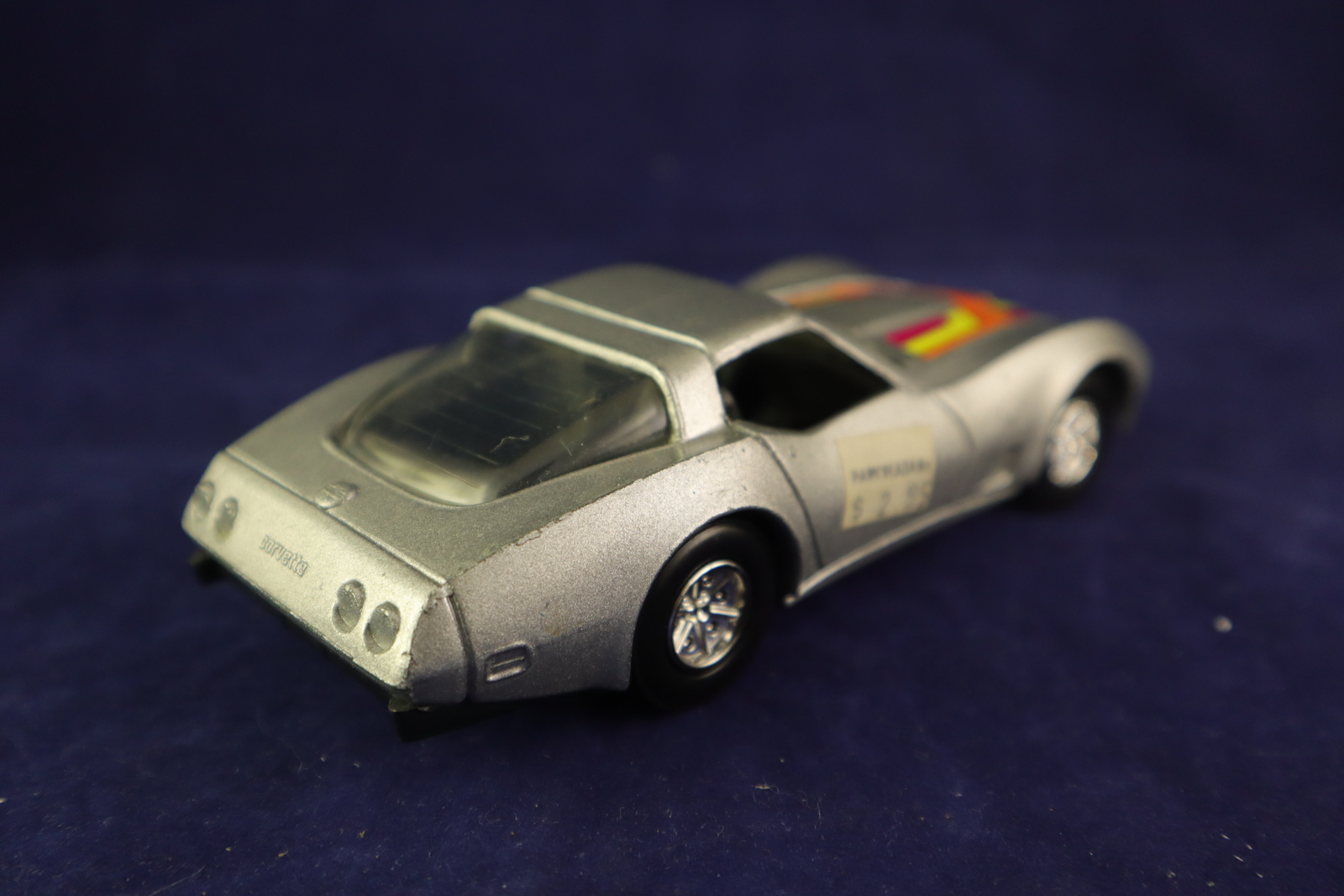 Other Information: This diecast is a 1/30 scale model of a Chevrolet Corvette (a 1978-1982 C3 from what I can tell) made by Strombecker. It is silver in color and features an opening hood.