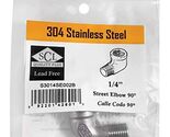 STRT ELBW 90D 1/4" Smith-Cooper 1/4 in. FPT x 1/4 in. Dia. FPT Stainless Steel Street Elbow Features Dimension: 4 x 0.3 x 4 in. Cube: 4.8 Application: Fittings Meet Applicable Chemical Physical Properties Color Family: Steel Compatible Pipe Material: Stainless Steel USA SHIPPING estimates delivery times and we work to get your item to you as quickly as possible and within those times, but please know it may take slightly longer than the estimate.