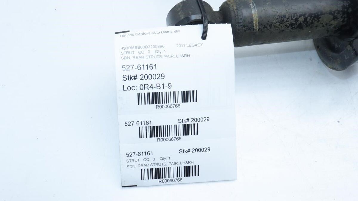 Welcome to our Store! Struts Rear Pair Left/Right Sedan Fits 10-14 LEGACY 66766 Description Donor Vehicle VIN: Model: LEGACY Year: 2011 Mileage: 148000 (0 = not available or unknown) Stock Number: 200029 Store Number: 1 Part Detail Part Grade: Part Category: U Part Placement: Notes: REAR STRUTS, PAIR, LH RH 20365AJ005 This part will fit these makes and models with these options LEGACY 10-14 Rear; Sdn WARRANTY / GUARANTEE Return Policy All parts we sell come with a 30 Day Money Back Guarantee unless otherwise stated. The 30 day period starts when you take possession of the part. Please contact us through messaging for a Return Merchandise Authorization Number (RMA) before returning any part. We do not cover the cost of labor charges during the installation of your parts. All original shipping costs are non-refundable. Standard Warranty We offer a standard warranty on all mechanical parts. This covers the part only, no labor charges to install the part. We are not responsible for any improper installation or misdiagnosis. SHIPPING NOTES ABOUT US HELP Rancho Cordova Auto Dismantling ships to US addresses within the continental 48 states. Shipping to Alaska, Hawaii, Puerto Rico, APO, FPO or PO Box addresses is available for select parts only. Please contact us through messaging for details and shipping rates. Local Pick-up at our facilities is available. Please contact us prior to your purchase to arrange local pick-up. Buyer must select 'Buy It Now' prior to local pick-up. Please allow up to 10 days for delivery unless your part is included in's Guaranteed Delivery Program. Most areas in the US are within 5 days. If an item arrives damaged, please contact us via messaging within 24 hours for assistance. Please contact us prior to purchasing this part if you have any questions regarding our business policies, the warranties or guaranties we offer or the fitment of this part with your vehicle. We strive to make sure your vehicles repair needs are met the first time you order a part through our store . To do so, we are happy to verify your vehicles VIN number prior to your purchase, please use the Contact Seller feature within the listing. Parts Grading. A standard code system is used to communicate the condition and quality of a part between automotive recyclers, automotive repair shops, and insurers. Knowing how these codes are used will help you understand whether the part meets your expectations before you buy it and what you can expect from the part when you receive it. A Grade - The highest quality part. It is of low miles and/or exceptional condition for its age. B Grade - The second level quality part. It is of average miles and normal condition for its age. C Grade - The third level quality part. It has high miles and/or light damage. No Grade - A part that has not yet been graded.