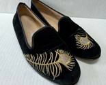 STUBBS & WOOTTON Womens Black Velvet Feather Slip-On Loafers SIZE 7 8