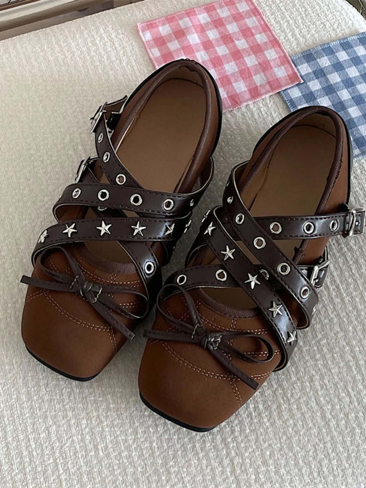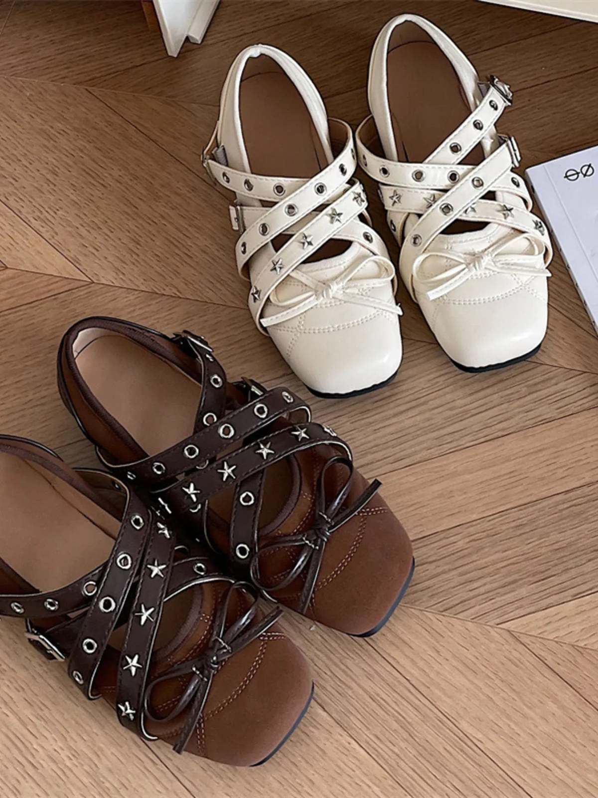 - Studded Strappy Bow Slip-Ons