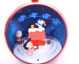 Studio Eluceo Peanuts Snoopy diorama Christmas big ornament lights music animate Big plastic ornament style diorama. Can be hung or sit on table top. Plays music and characters rotate inside. Works great! Some scratches and wear from use as shown see pics.
