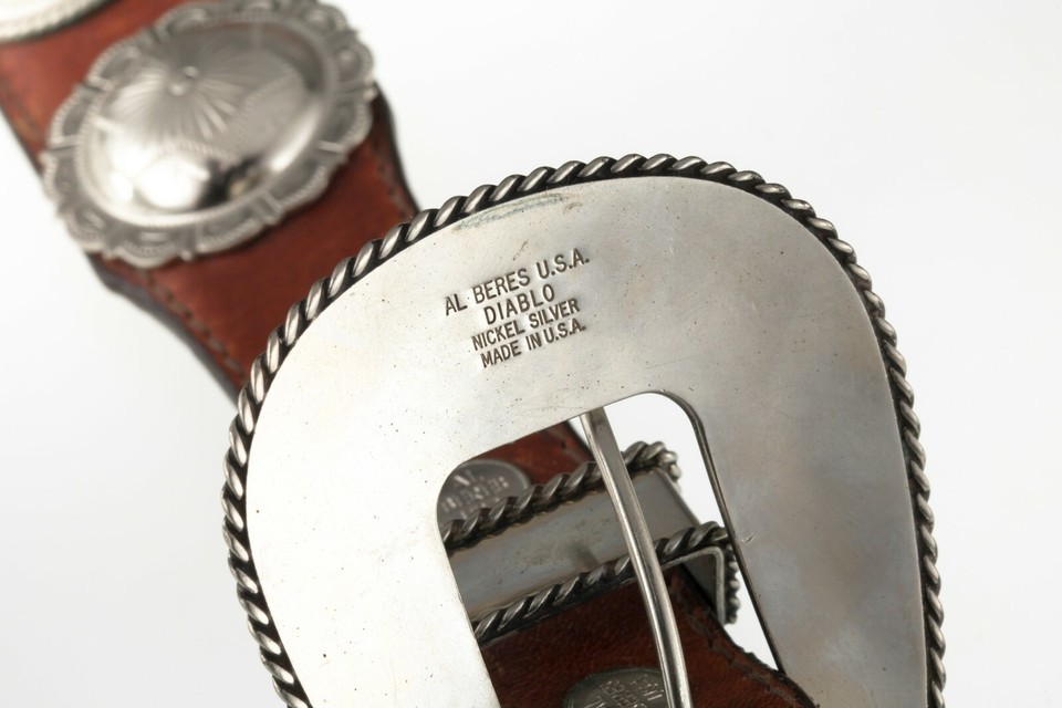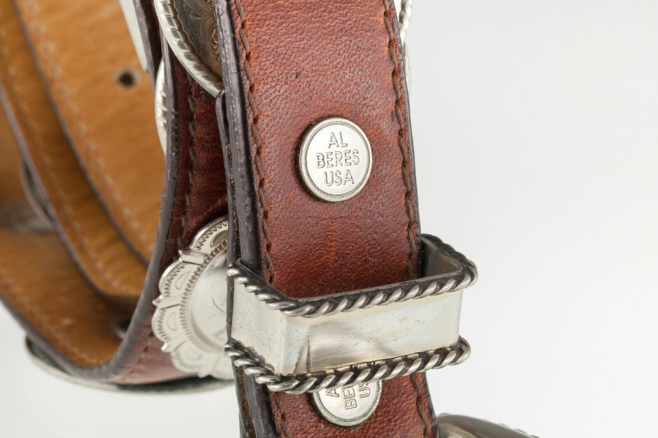 Primary image for Stunning Al Beres Devil Nickel Silver Concho Leather Belt-