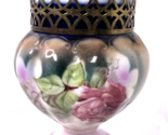 Primary image for Stunning Pink Rose with Cobalt Pedestal Vase with Brass Flower Frog Topper