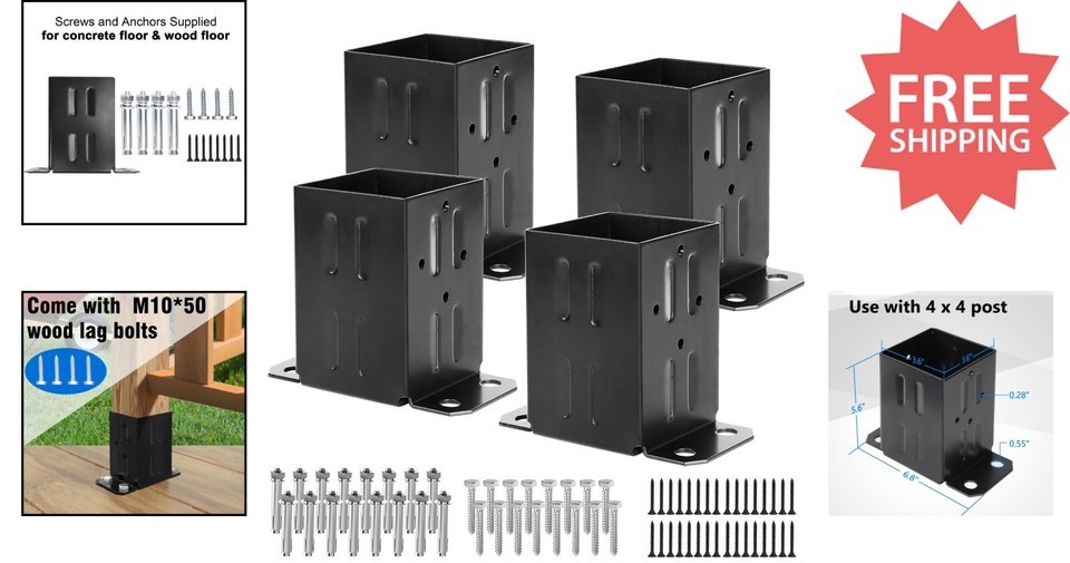 - Sturdy 13GA Steel Post Bases with Screws & Anchors - Fits Standard 4x4 Posts