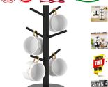 Sturdy Black Bamboo Coffee Cup Organizer - 6-Hook Design for Stylish Spaces