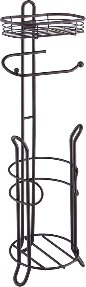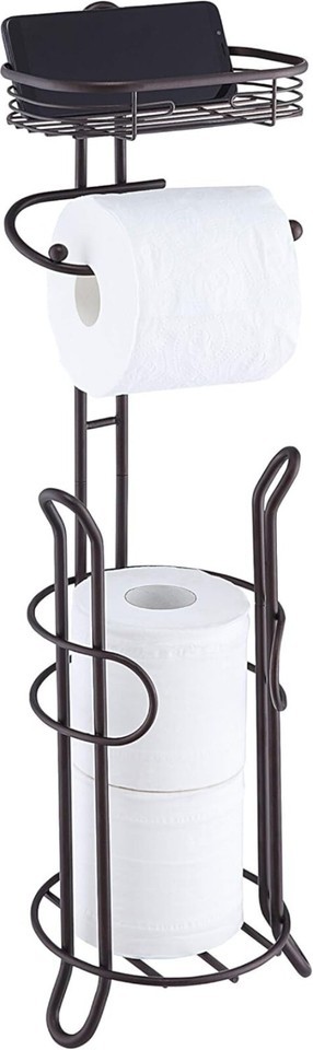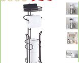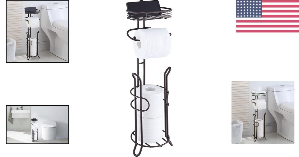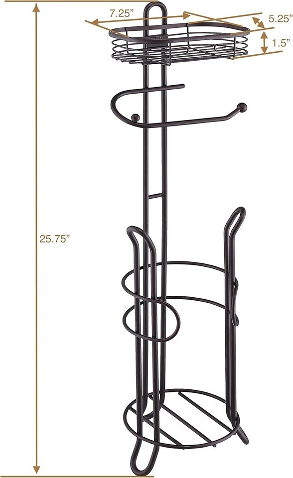 - Sturdy Metallic Toilet Paper Roll Dispenser with Reserve and Accessories Basket