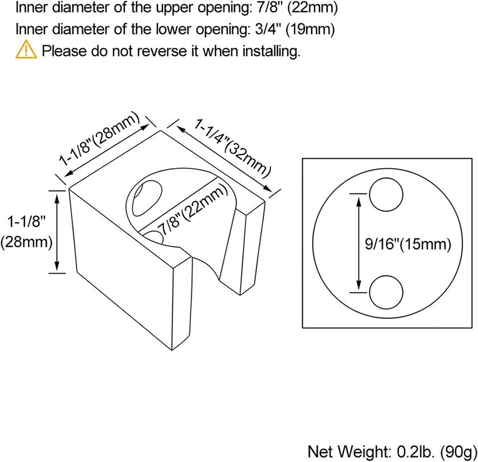 Inner diameter of top opening: 7/8" (22mm), bottom inner diameter: 3/4" (19mm).