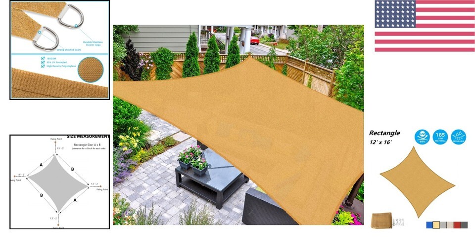 - Stylish 12' x 16' Sand Shade Sail with 95% UV Protection for Any Outdoor Space