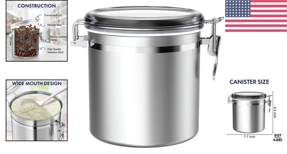 - Stylish 165 oz Stainless Steel Airtight Canister - Large Food Storage Solution