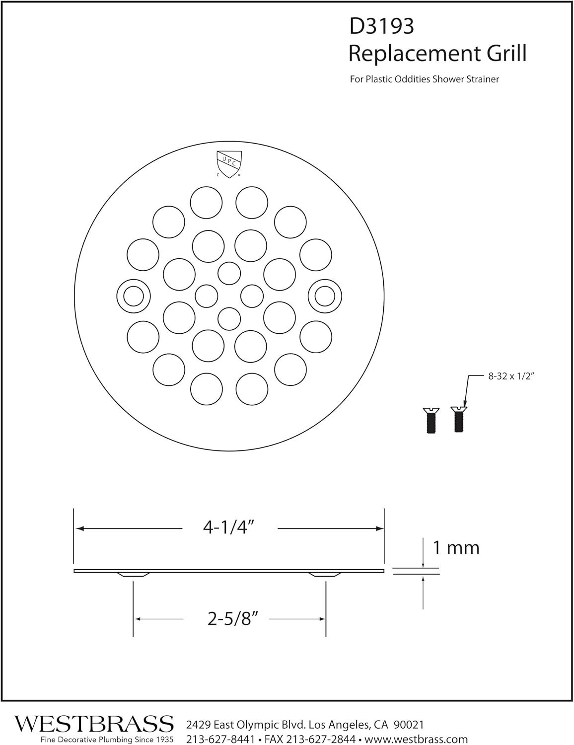 Upgrade your bathroom with the Westbrass Plastic Oddities Style Screw-in Shower Strainer Grill. Crafted from durable brass and finished in a classic Powdercoated Black, this 4-1/4 inch O.D. grid seamlessly covers your drain pipe. Its 2-5/8 inch hole-to-hole measurement and included screws ensure a secure fit. Designed to blend functionality with style, it enhances your shower floor while maintaining easy access to your drain. Trust in Westbrass?s legacy of quality and innovation for your bathroom needs.
