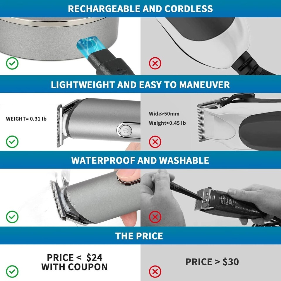 Waterproof Design: With an rating, this trimmer caters to both dry and wet shaving needs, perfect for beards, sideburns, self-haircuts, or even personal grooming.