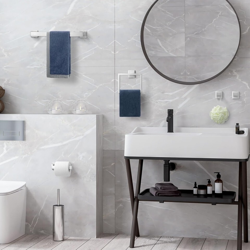 5 Piece Combination: Complete with a 16-inch towel bar, a chic towel ring, a sleek toilet paper holder, and 2 practical towel hooks to maximize your bathroom space.