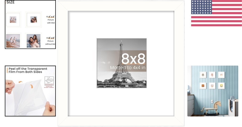 Double Size Design: The 8x8 inch frame is ideal for displaying 4x4 pictures with a mat or an 8x8 photo without a mat, ensuring a snug fit while keeping your photo stable.