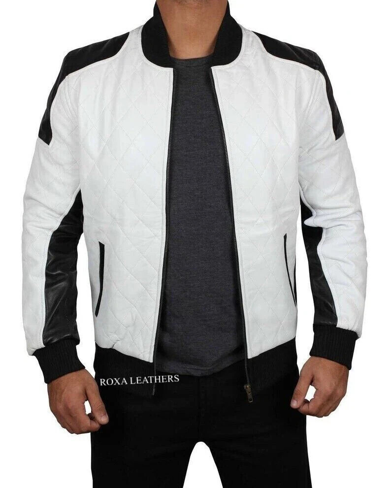 Stylish Classy Biker Soft Men's Jacket White Handmade Leather Genuine Lambskin