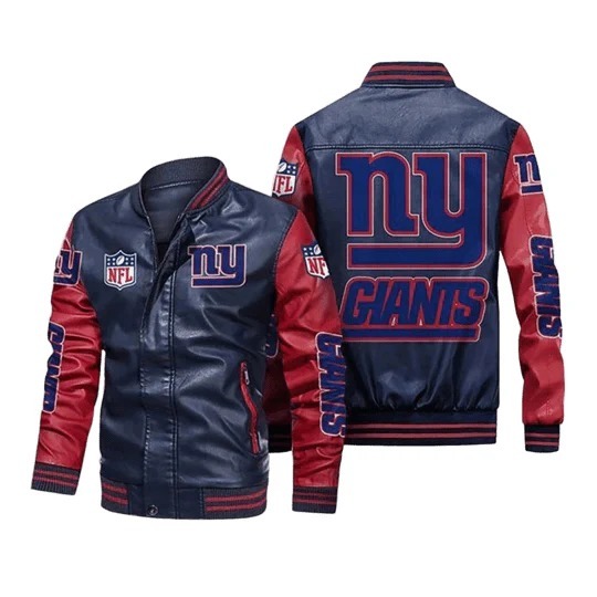- Stylish NFL NY Giants Bomber Varsity Look Leather Jacket