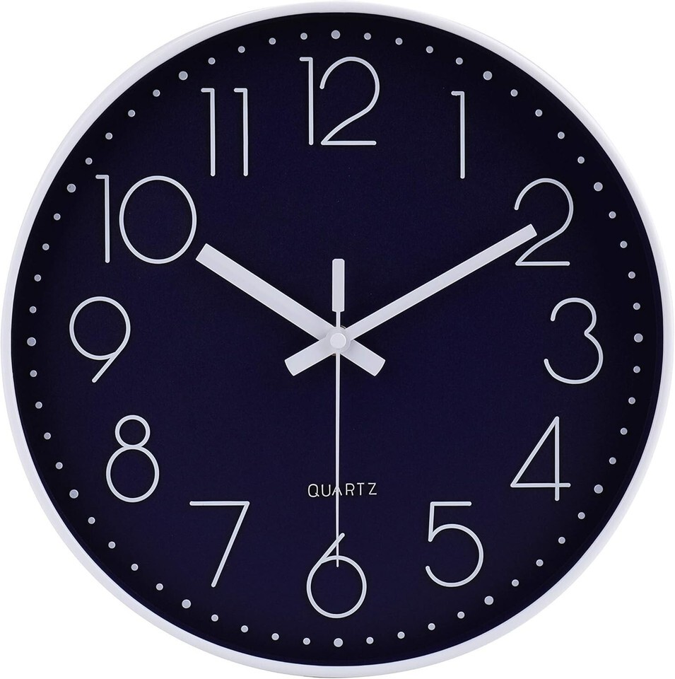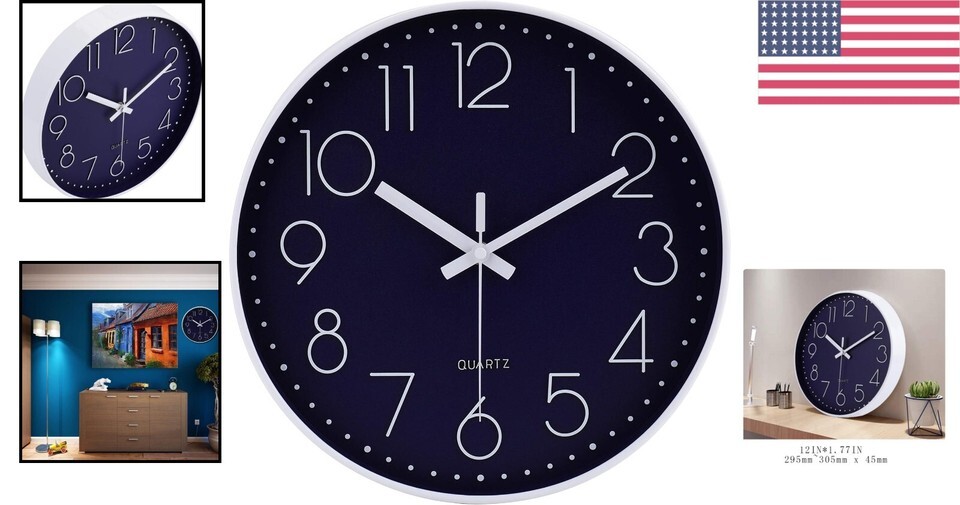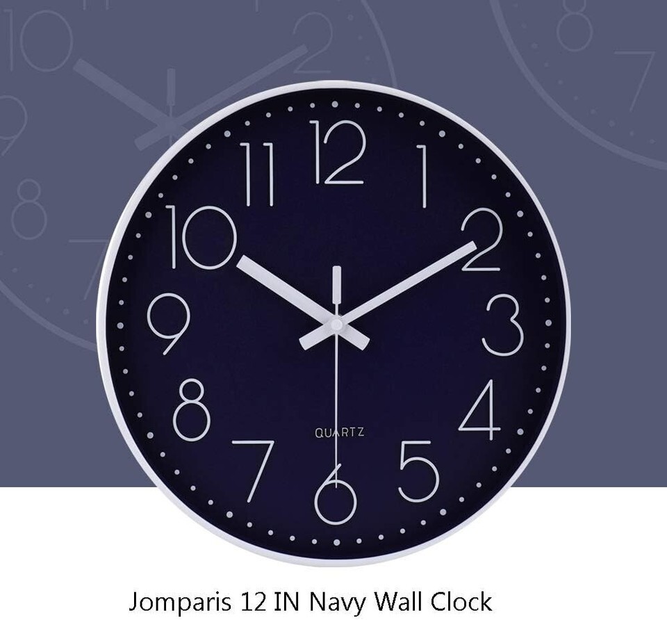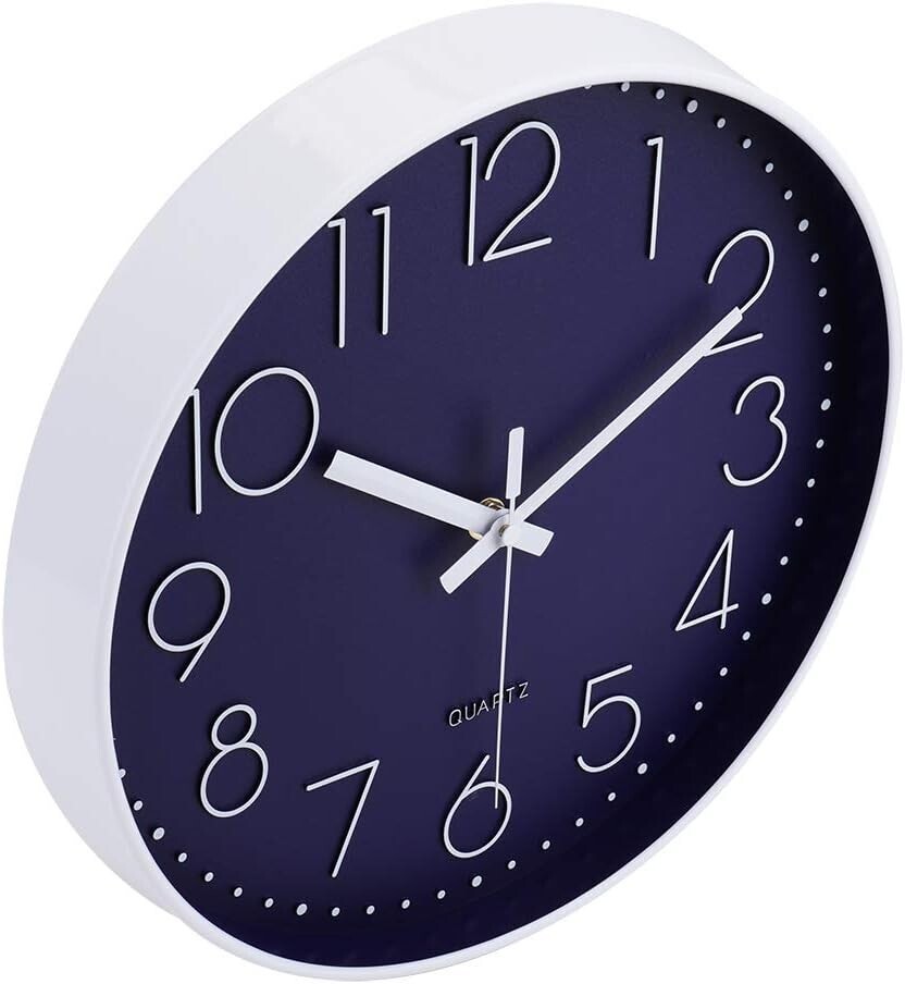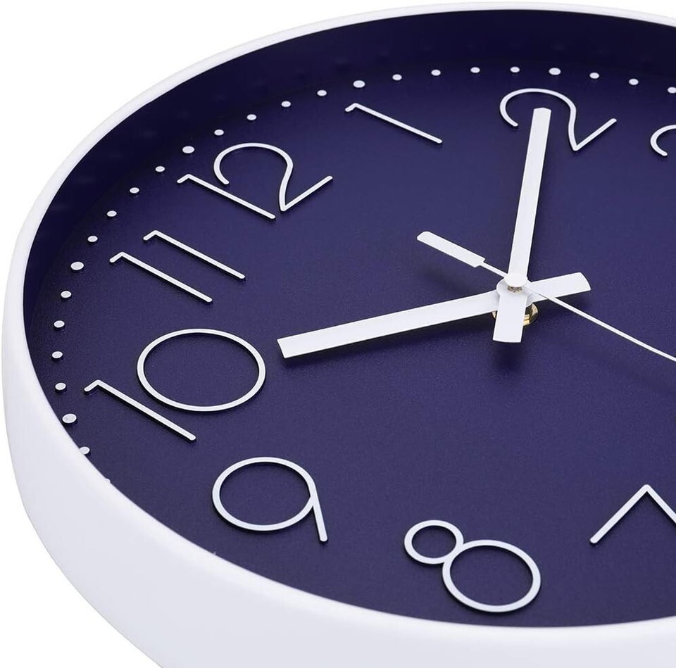 - Stylish Navy Blue 12 Inch Battery Operated Quartz Wall Clock - Modern Elegance