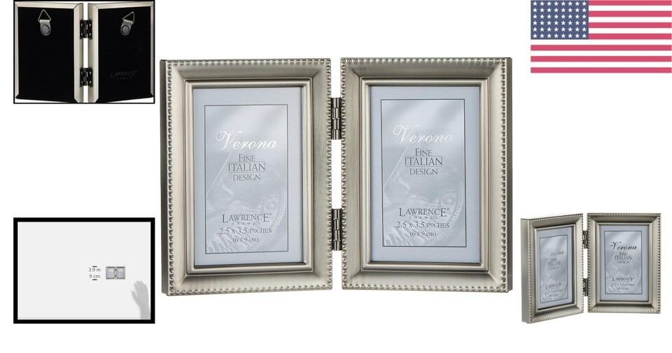 - Stylish Pewter Double Photo Frame 2.5x3.5 - Antique Charm for Memorable Moments