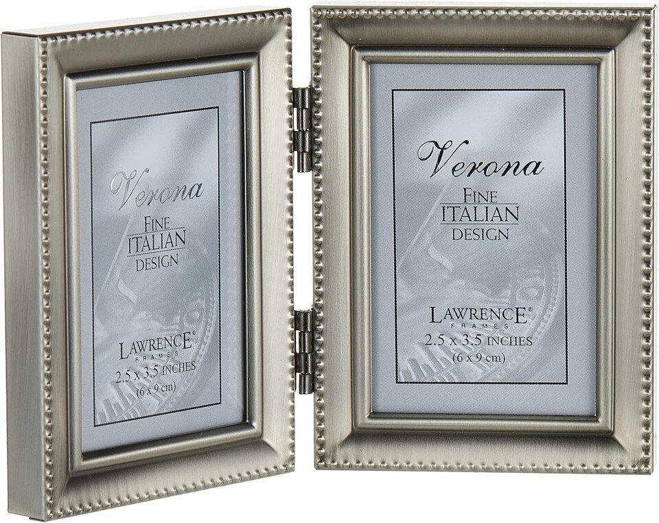 Stylish Pewter Double Photo Frame 2.5x3.5 - Antique Charm for Memorable Moments