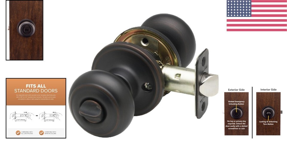 - Stylish Tuscan Bronze Colonial Knob - Lockable Privacy Function, Easy Install