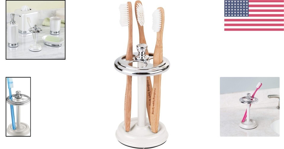 - Stylish iDesign Toothbrush Holder - Compact Chrome and Pearl Bathroom Organizer