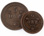 Suède plein De 2 Pièces (1875 2 Ore VF, 1882 5 Ore VF Grand Pièce de Monnaie Lot