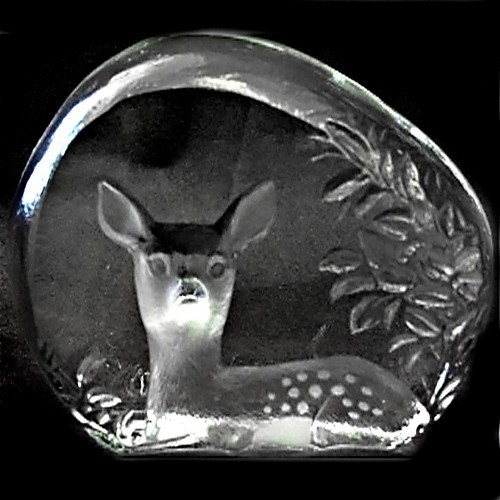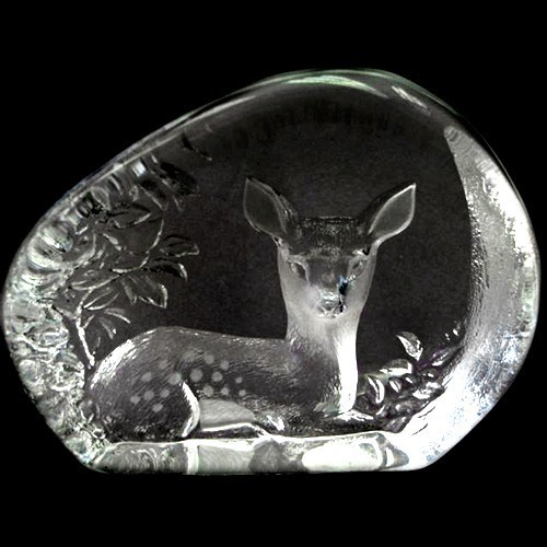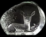 Suédois Gravé Cristal Presse-Papier Assis Bois Fawn Mats Jonasson