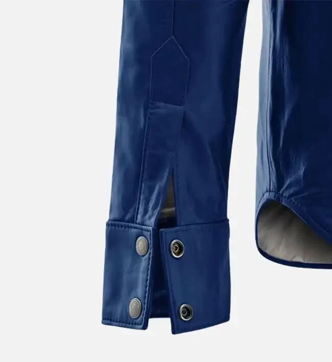 Suave Ropa de Fiesta Casual Fit Hombres Camisa Azul Hecho a Mano Piel de Cordero Cuero Elegante Real\MN