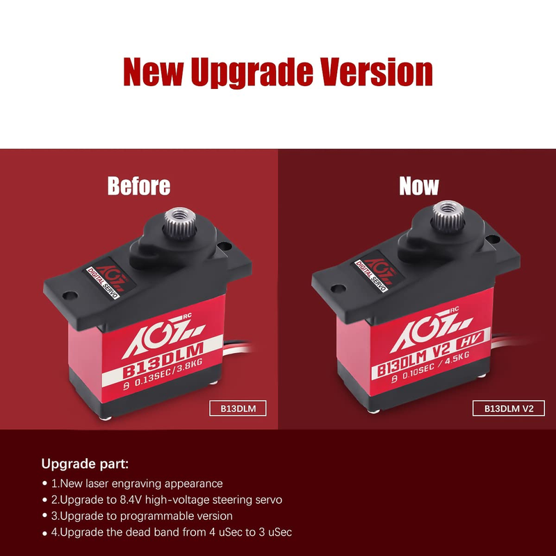 B13DLM V2 is a upgraded 8.4V high voltage version, which can provide 4.5KG torque and 0.10Sec speed.