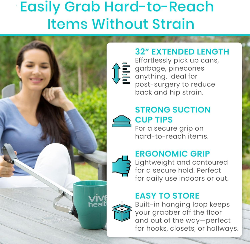 EASY GRABBING EXTENDER: Pick up large or small items with ease. Cans, garbage, pinecones, you name it! Make daily living a breeze. Reduces strain on your back and hip, especially after surgery.