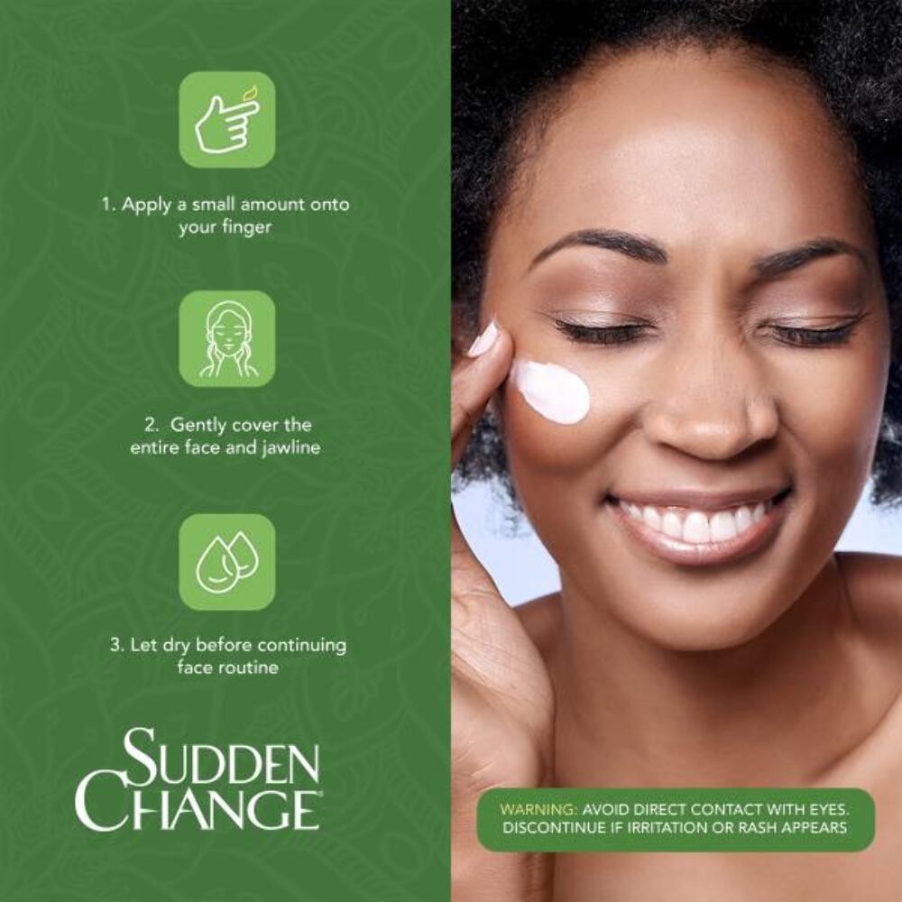 Sudden Change Intensive Wrinkle Repair Anti Aging Facial Cream for Dry, Sensitive Mature Skin (0.5oz, Pack of 1) ? Clinically Proven to Reduce Wrinkles - After applying Sudden Change Intensive Winkle Repair Cream, the appearance of your deep wrinkles will diminish. Within just a few short weeks, you will notice fine lines with fade leaving a smooth appearance ? Hydrates Plumps Your Skin - Keeping your face moisturized is essential to improve and repair damaged skin. Packed with vitamin A, C, and E our anti-aging wrinkle cream minimizes dryness while firming for a healthy glow and a flawless makeup application ? Promotes Collagen Elastin - Sudden Changes anti-aging lotion supports the skin by reactivating collagen in your cells. Carefully formulated with elastin, our face product naturally promotes elasticity in your skin for a youthful look ? Noticeable Results Within 2 Weeks - After restoring your skin's natural barrier, you will notice a younger appearance within 14 days. Our lightweight facial lotion vanishes smaller fine lines while minimizing the look of stubborn crow's feet ? Easy Daily Application - Apply our lightweight cream to your face and neck in the morning to freshly cleansed skin. Avoid direct contact with eyes. Discontinue if irritation or rash appears. All Sudden Change products are proudly made in America (description exceeds maximum possible length)