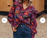 - Sugarlips Raveena Midnight Malbec Ruffle Button Up Blouse L New