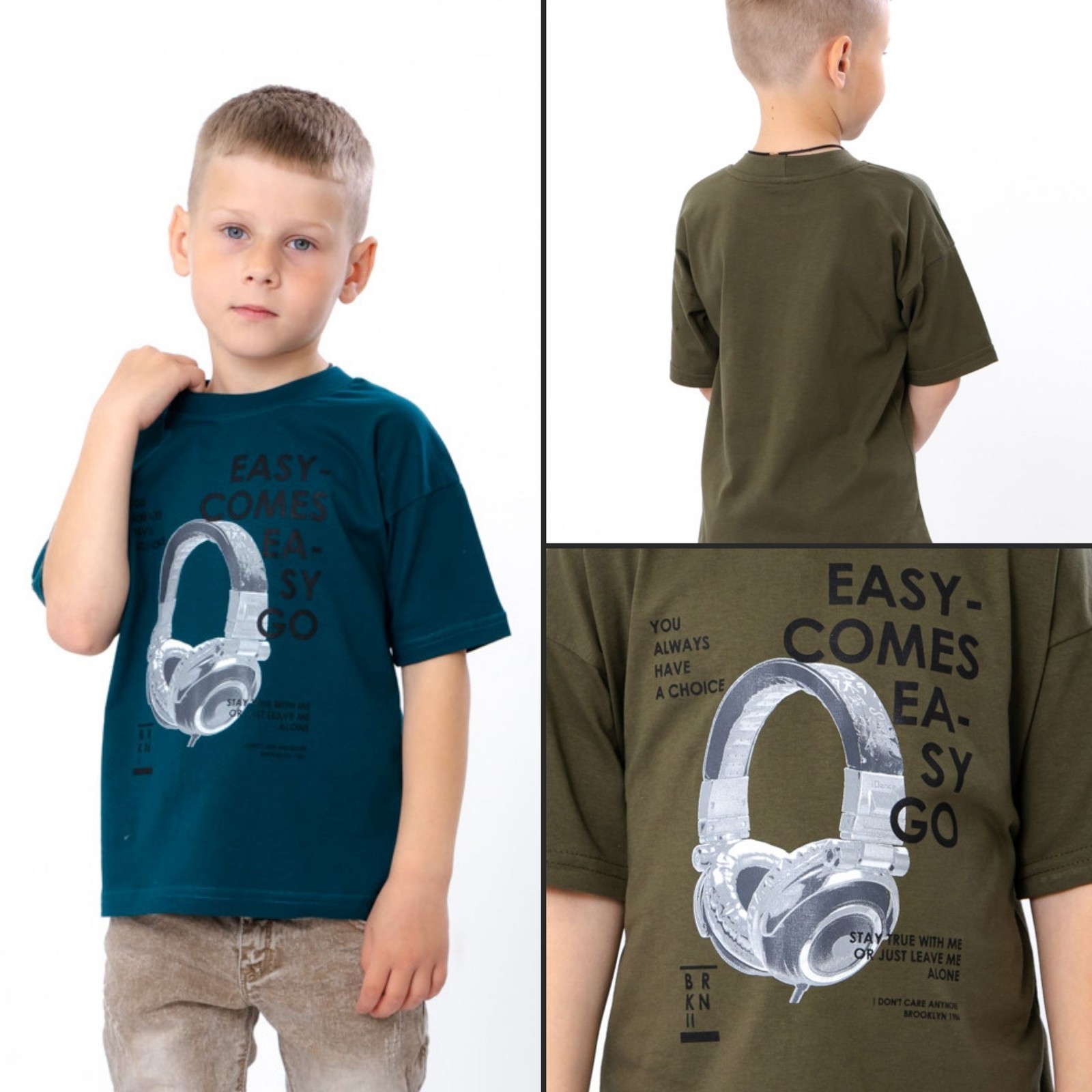 This T-shirt is a great choice for active boys who value comfort and style. Made from natural kulir fabric (100% cotton), it's soft on the skin, breathable, and retains its shape after washing. The classic cut with short sleeves and a round neckline provides freedom of movement.