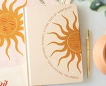 The Sun A5 Notebook is a stylish and functional choice for avid writers and travelers. With a vibrant sun design on the cover, it contains 100 sheets (200 pages) and a ribbon divider for effortless organization. The notebook's cover is adorned with the motivational words 'Journeying Through Pages, Capturing Memories, Etching Tales of Wanderlust,' providing inspiration for capturing your thoughts, memories, and adventures.
