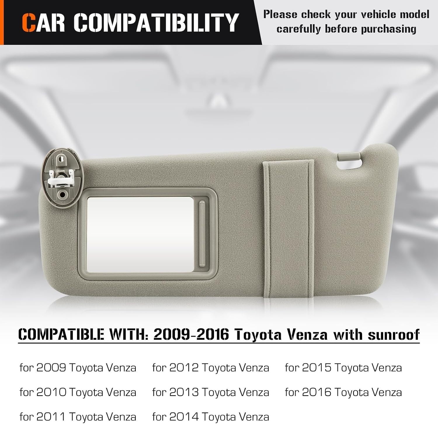 - Sun Visor with Light for 2009-2016 Toyota Venza with Sunroof, Left Driver Sid...