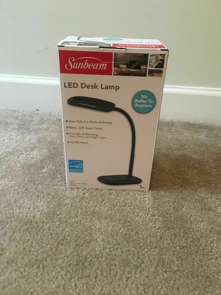 Sunbeam Flexible Neck Led Desk Lamp Adjustable Light Black Energy Star - NIB - NEW. The box is bent/torn in places.