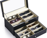 Sunglasses Organizer with 12 Slots, Multiple Eyeglasses Eyewear Display Case for Women Men, 2 Story Leather Multi Sunglasses Jewelry Collection Holder with Drawer