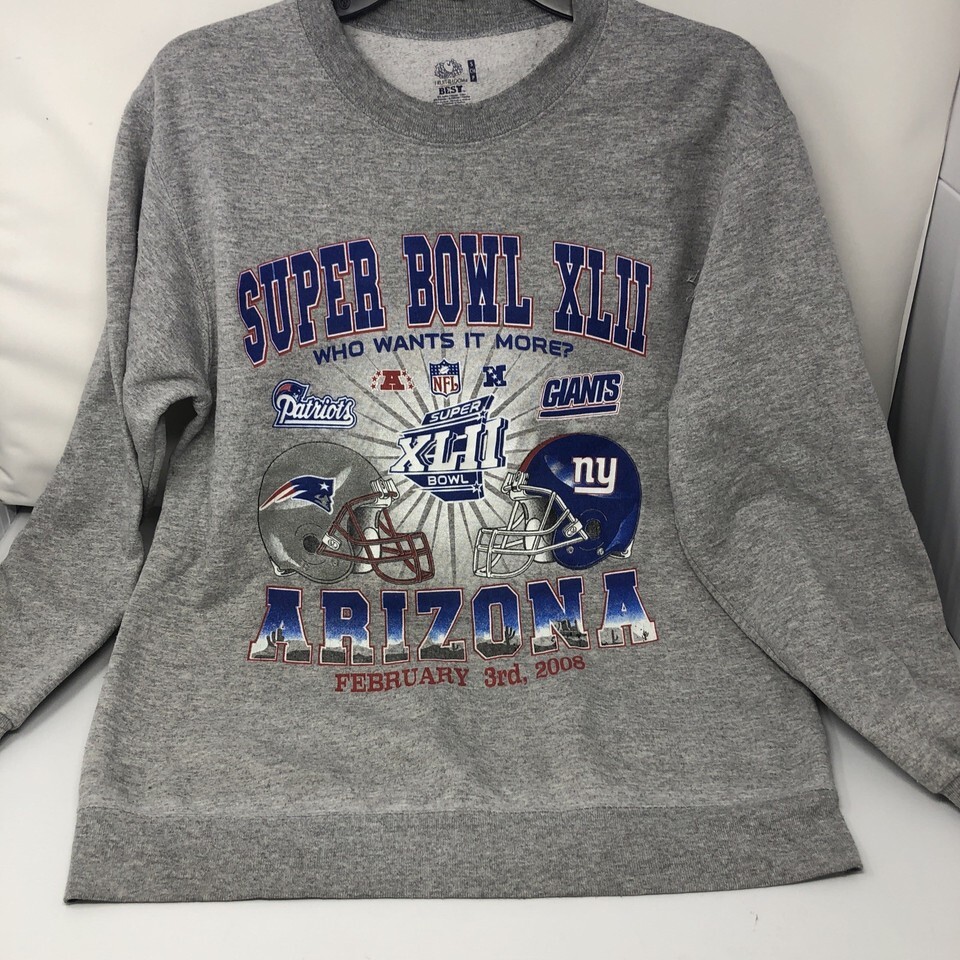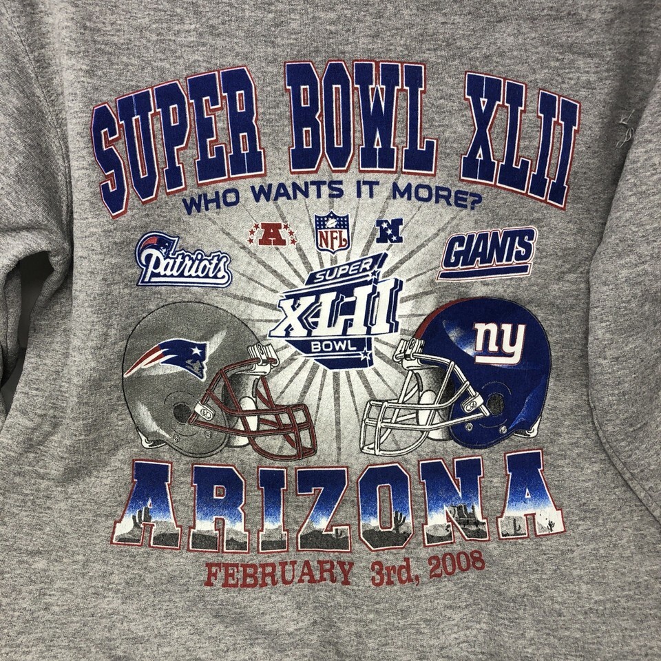 - Super Bowl XLII 2008 Arizona Patriots vs Giants Gray Sweatshirt Size S READ