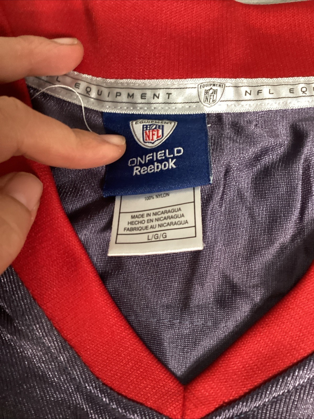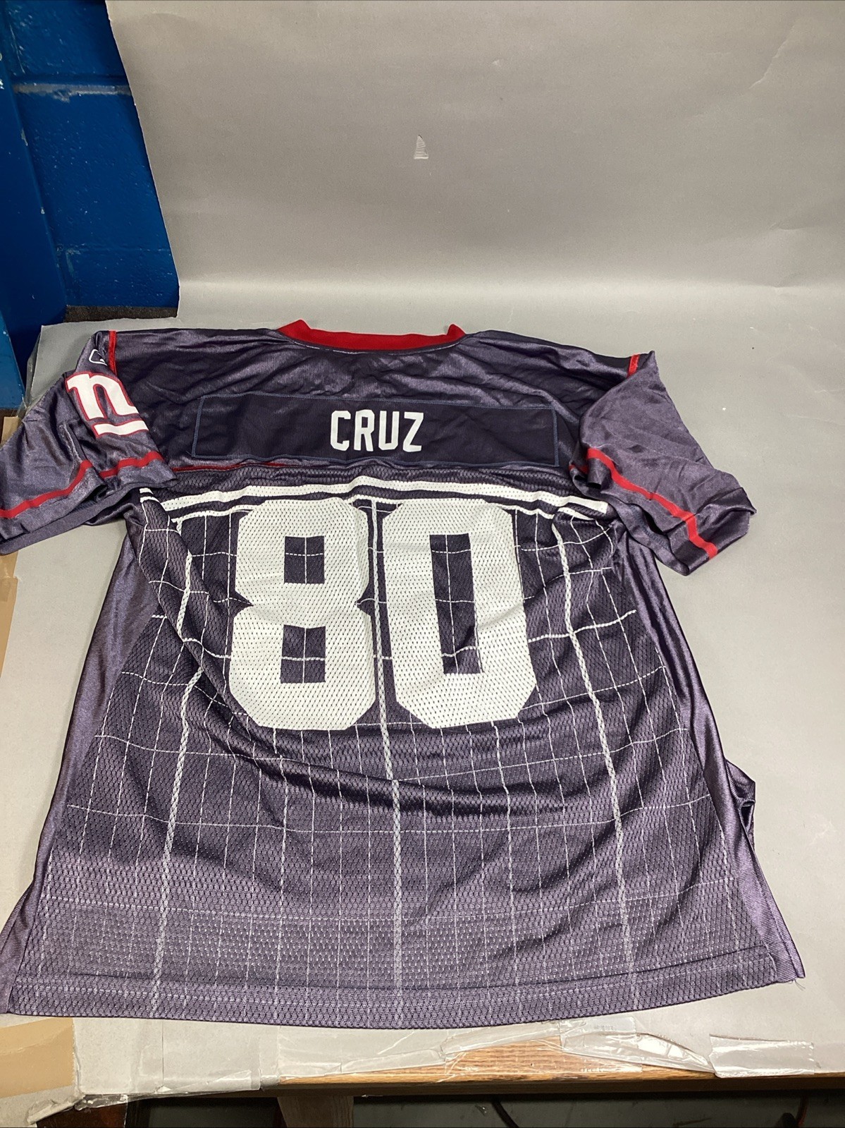 Super Bowl XLVI (46) New York Giants #80 Victor Cruz Large Jersey Reebok OnField. In very good condition. Made from 100% nylon.